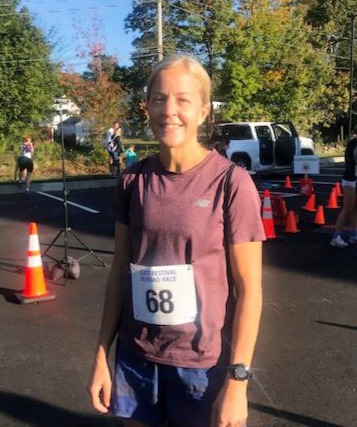 Katie Somers was officially "inducted" into our club at our Rotary After Hours at the Shipyard Brewpub in Eliot, but we didn't snap a photo of her at that time (probably having too much fun!). Instead, we snapped her photo while she was preparing to race at the Eliot Festival Day 5K (she finished in the top 10 of women racers that day and second in her category). Speedy Katie is a teacher of non-native English speakers at the Somersworth NH schools, but she lives in Eliot. She has already been involved with our club via our Geography Quiz Nights and, following the race, she volunteered by helping us sell gelato at the Eliot Festival. We look forward to more good times together making the world a better place with this newest member of our club.